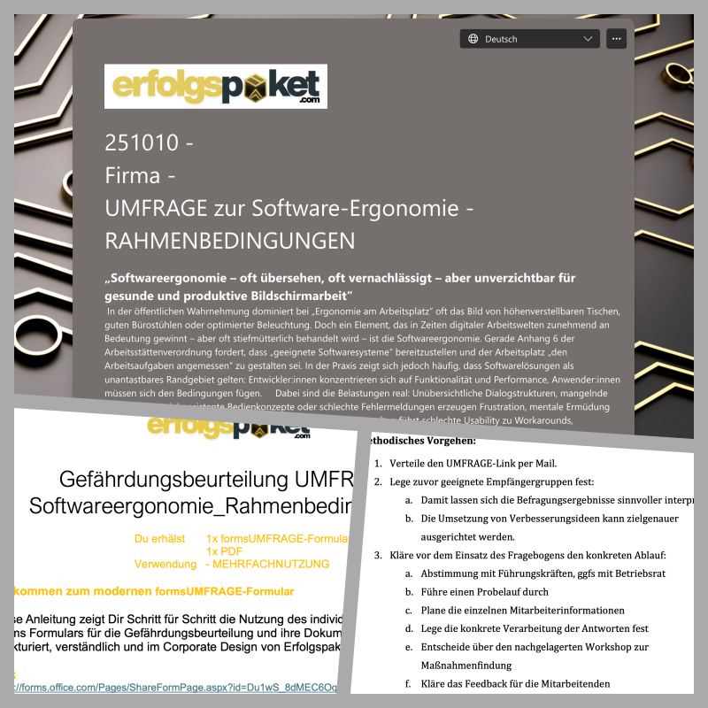 ![Gefährdungsbeurteilung Softwareergonomie – Digitale formsUMFRAGE Rahmenbedingungen (Mehrfachnutzung) [Digital] – Bild 2](https://erfolgspaket.com/wp-content/uploads/2025/10/671-collage_1.png)