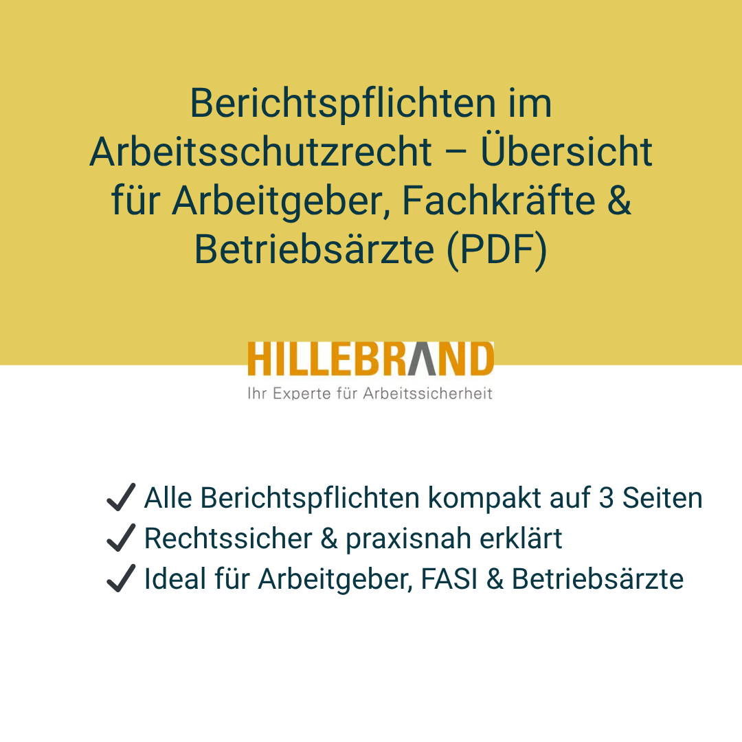 Dieses praxisorientierte Übersichtsdokument zeigt Dir alle wichtigen Berichtspflichten im deutschen Arbeitsschutzrecht – kompakt, klar und rechtssicher aufbereitet. Ideal für Arbeitgeber, Fachkräfte für Arbeitssicherheit und Betriebsärzte, die Dokumentationspflichten strukturiert erfüllen wollen.