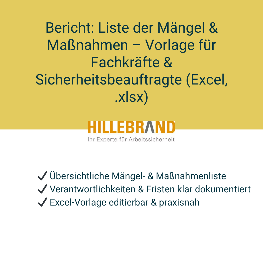 Bericht: Liste der Mängel & Maßnahmen – Vorlage für Fachkräfte & Sicherheitsbeauftragte (Excel)